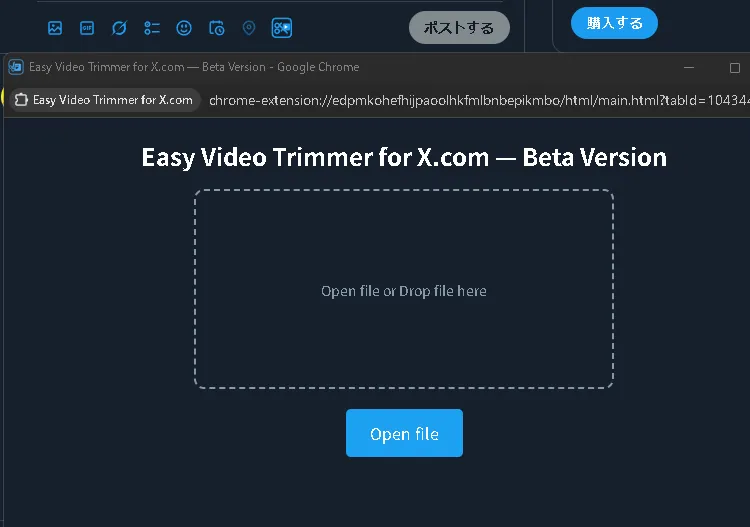 Easy Video Trimmer for X.comという拡張機能を使うと、投稿画面からそのままトリムして添付までできるので、サクッと紹介します。