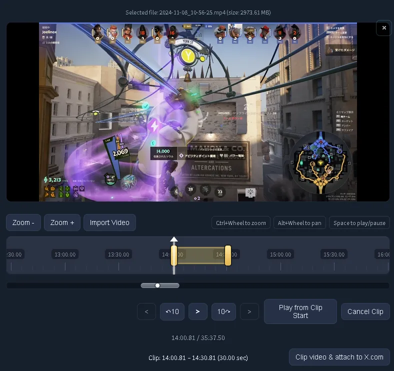- クリップ後の動画をPCに保存せずそのままX.comに添付できます