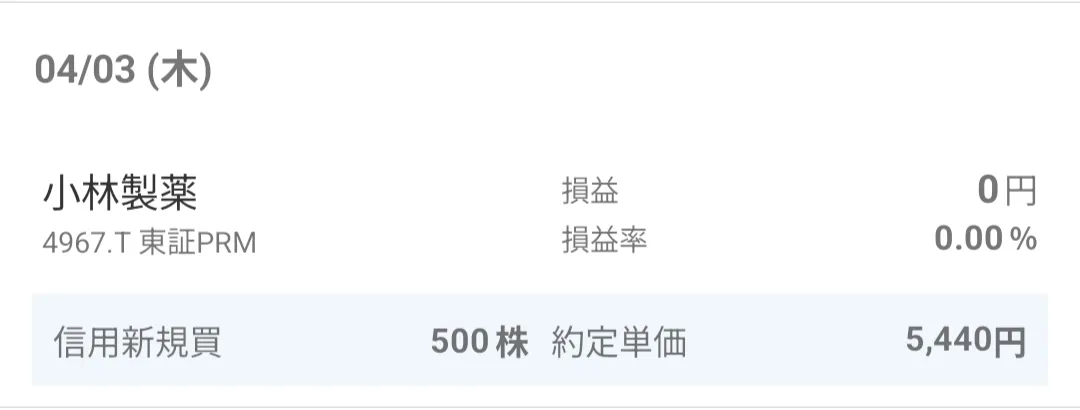 新規建て:2025/04/03|500株|約定単価 5,440円